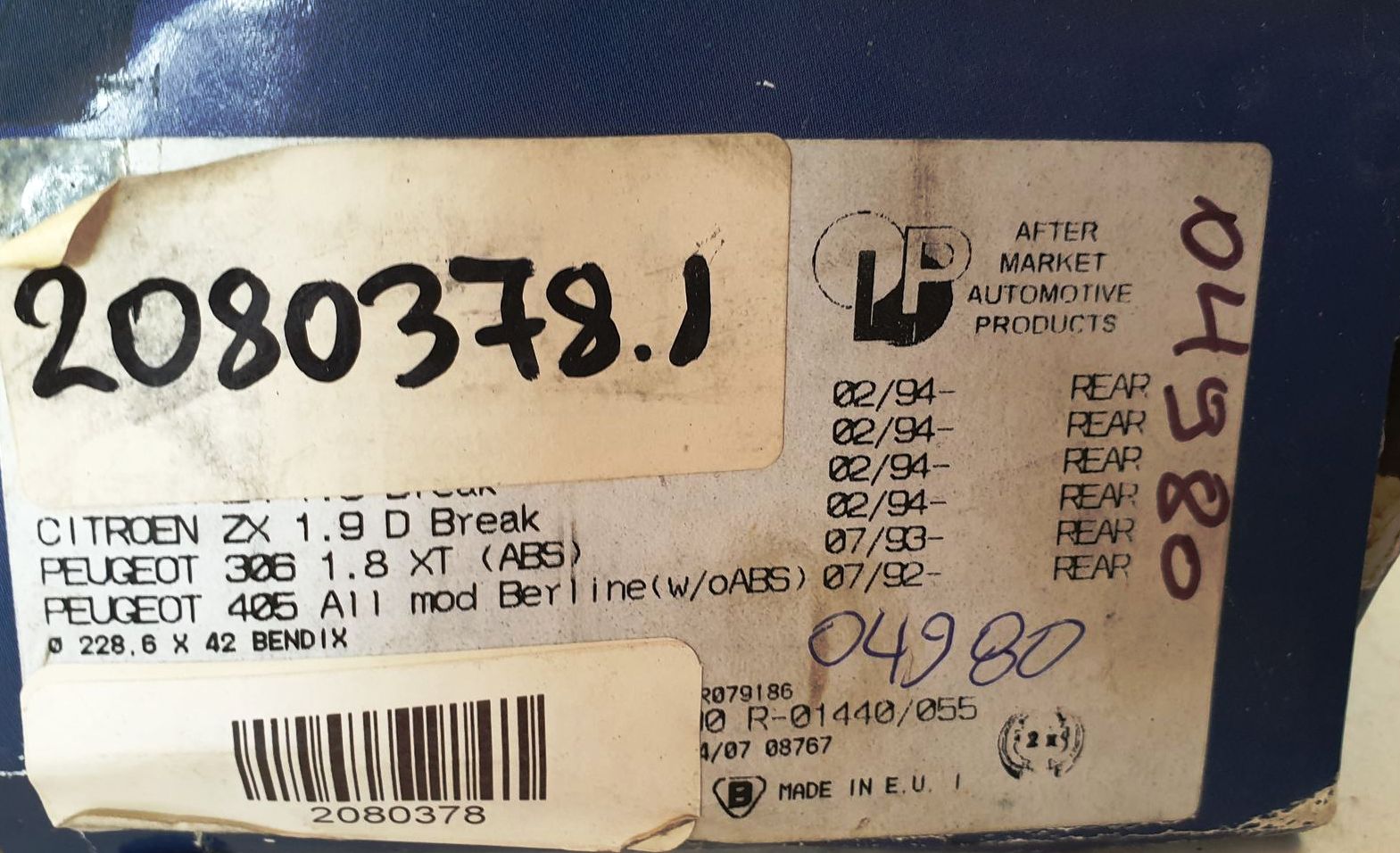 Brake shoe set for Citroen ZX, Peugeot 306, 405