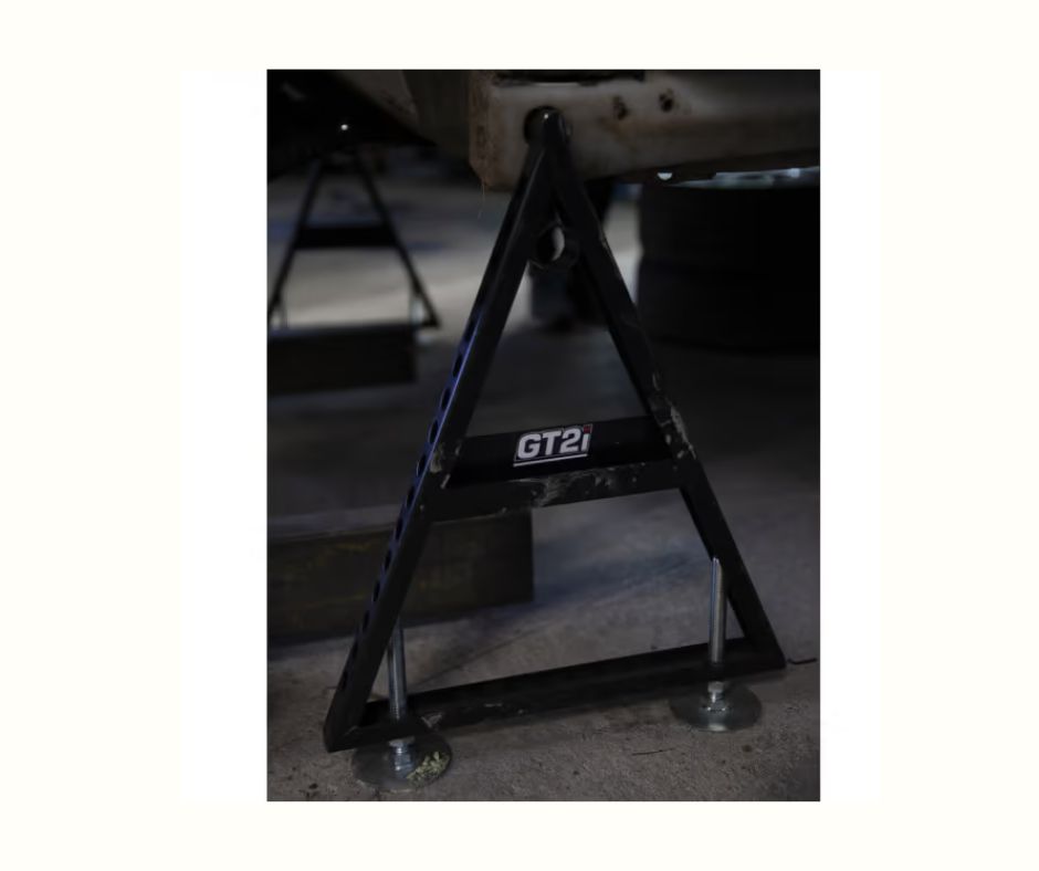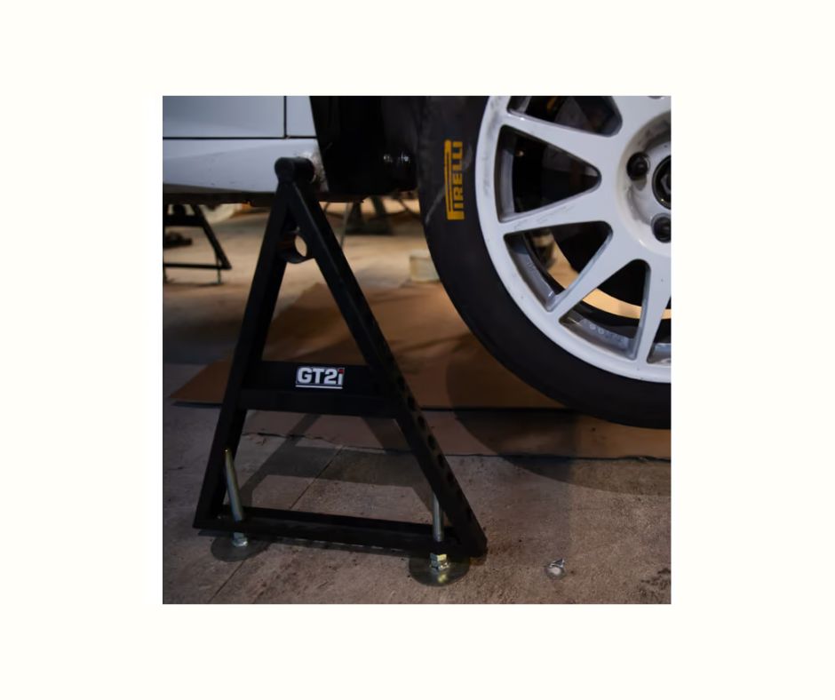 GT2i Race adjustable jack stands in galvanized steel for rally cars.