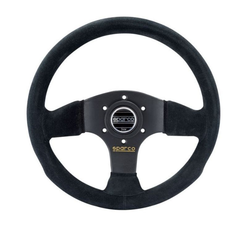 Sparco P300 flat steering wheel in suede with 3 black spokes.